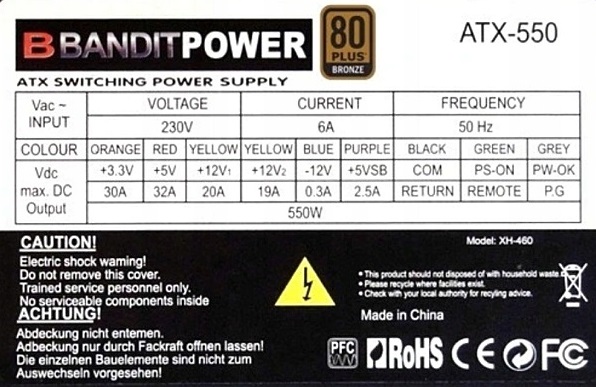 БЛОК ЖИВЛЕННЯ ATX Bandit 550 Вт 80+ 14 СМ 4xSATA 2xMOLEX 2xPCI-e