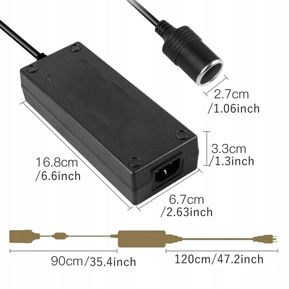 ⚡⚡【 Примітка】 Перетворювач напруги підходить лише для пристроїв нижче 180 Вт і струм нижче 15 А. Довжина кабелю: 120 см. Компактний та легкий дизайн полегшує передачу та зберігання. Автомобільний зарядний пристрій можна використовувати для різних цілей, як на ходу, так і вдома.