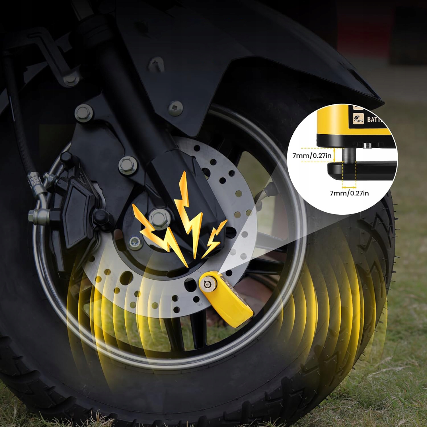 Вбудований датчик вібрації та руху запускає тривогу 110 дБ, як тільки хтось намагається перемістити велосипед або мотоцикл. Відмінний захист вдень і вночі.
