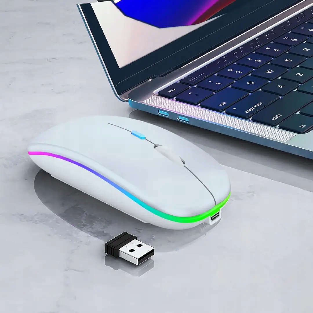 Bluetooth + USB 2,4 ГГц світлодіодна миша Біла бездротова акумуляторна миша