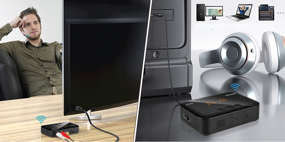 ✅ Аудіо Hi-Fi Bluetooth 5.0: має вдосконалений чіп Bluetooth 5.0 для стереозвуку Hi-Fi без втрат через Bluetooth передавати музику на вхідний динамік AUX або RCA, автомобільну або домашню стереосистему. Підтримує низьку затримку aptx. Краща сумісність і стабільність, радіус дії бездротового зв’язку понад 10 м / 33 фути