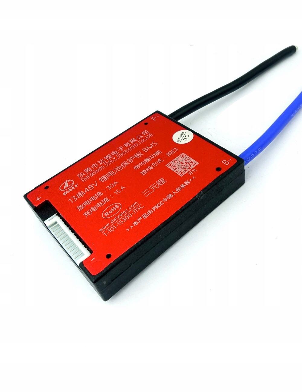 Високоякісний модуль BMS для зарядки та розрядки елементів 13S 30A 48V з функцією балансування. Має клас стійкості IP67, що означає захист від пилу, струменів води, вологи та короткочасного занурення у воду.