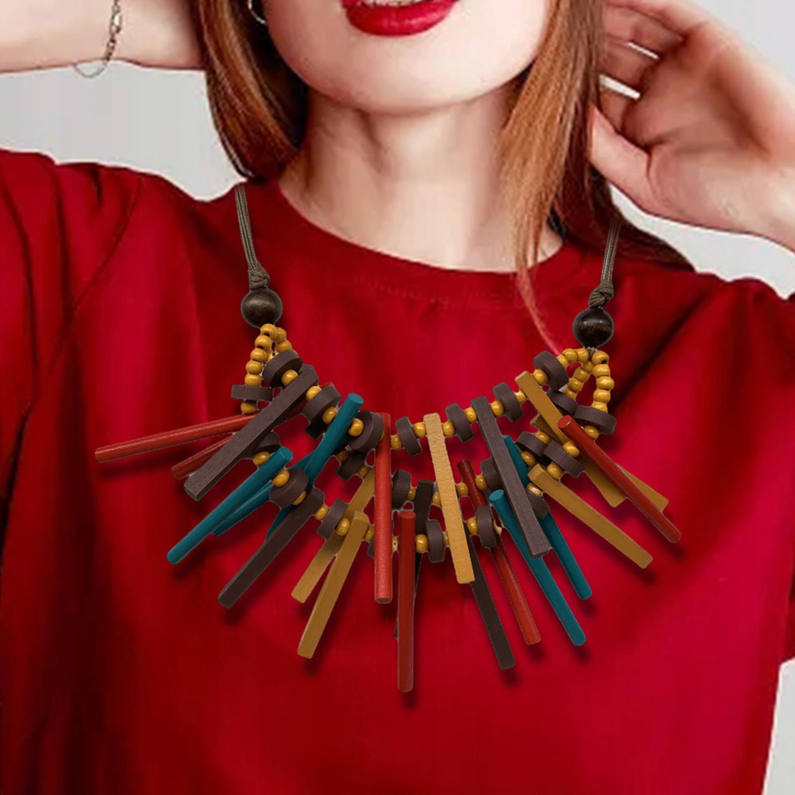 [Висока якість] Кольє з бісерами з богемами виготовлено з високоякісного дерев’яного матеріалу, міцного та міцного, непросто -розбиття, легкого, не просто для деформації та вицвілення, і зручного для носіння.