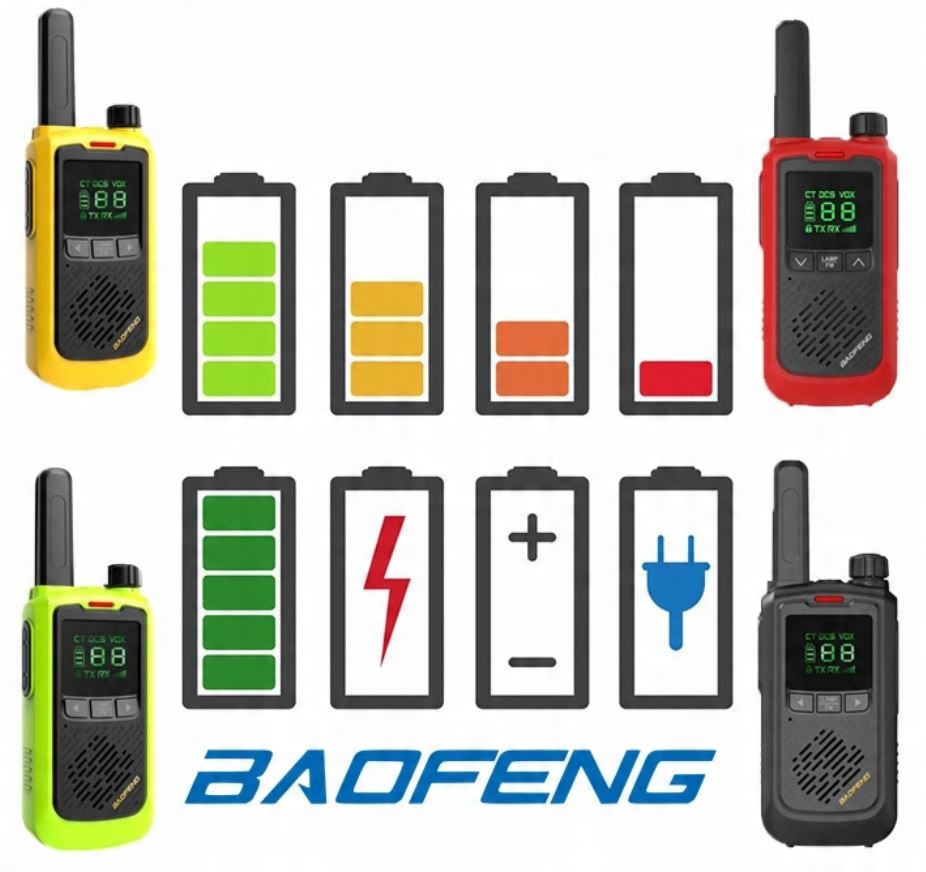 Рації живляться від акумуляторів ємністю 1500 мАг, що забезпечує дуже тривалий час роботи.