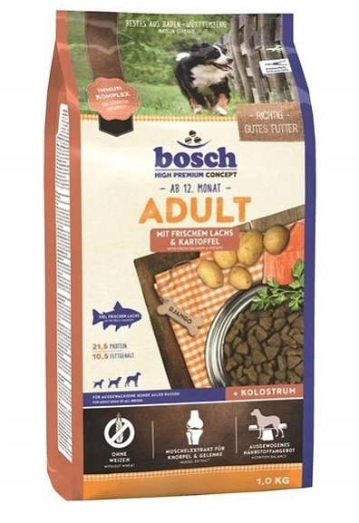 Доросла їжа Bosch містить велику кількість природного м'яса та птиці в поєднанні з картоплею та картопляним борошном, що робить його легким і ніжним для шлунка.