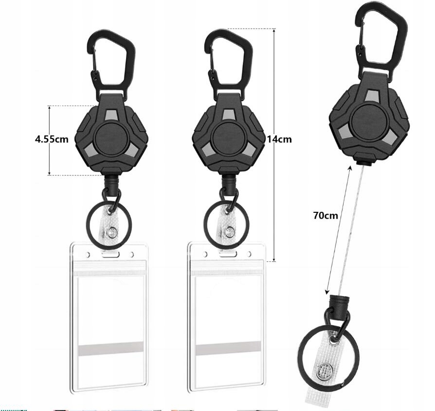 Міцний телескопічний брелок із кільцем для ключів і тримачем для значка. На нього можна повісити не тільки брелоки та значки, а й плоскогубці, гаманці, ножі, ліхтарики, викрутки та інші повсякденні речі.