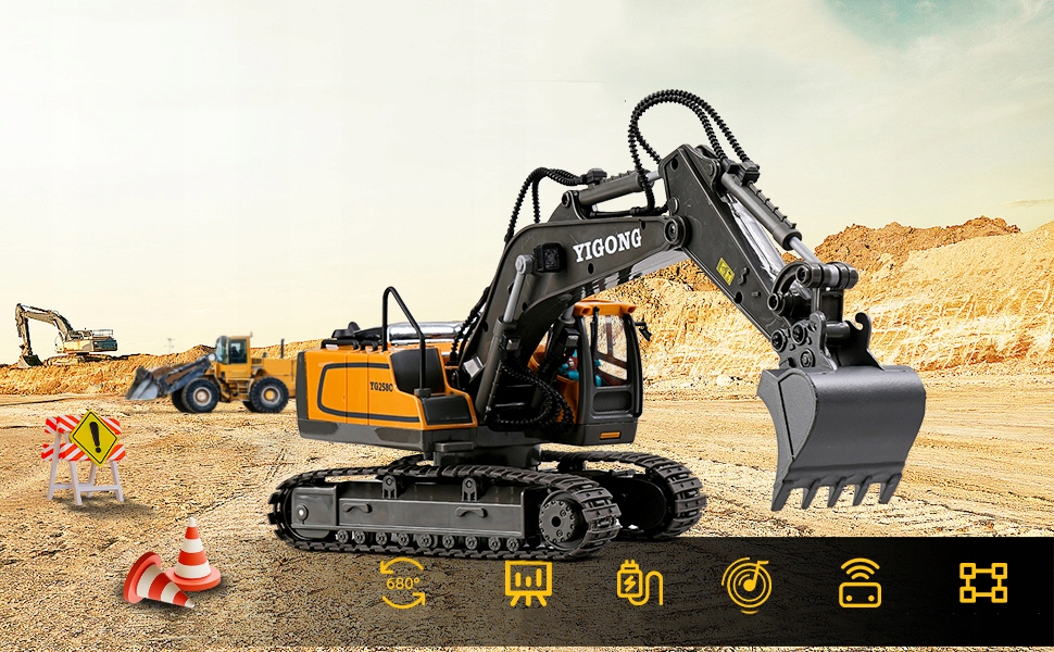 🔎11-канальний екскаватор FC з передньою/задньою функціями, ліворуч/правий поворот, піднімаючи вгору і вниз, щоб копати і рухатися в пухкий пісок, обертаючись на 360 ° на місці та обертання кабіни на 680 ° (340 ° у кожному напрямку), не турбуючись про труднощі з Починаючи, увімкніть кнопку демонстрації. Цей екскаватор очевидний.