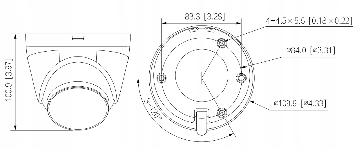 - Чутливість до перетворювача: 0,006 lux@f1.6 (колір, 30 IRE); 0,0006 lux@f1.6 (чорно -білий, 30 IRE); 0 люкс (увімкнено Illuminator)