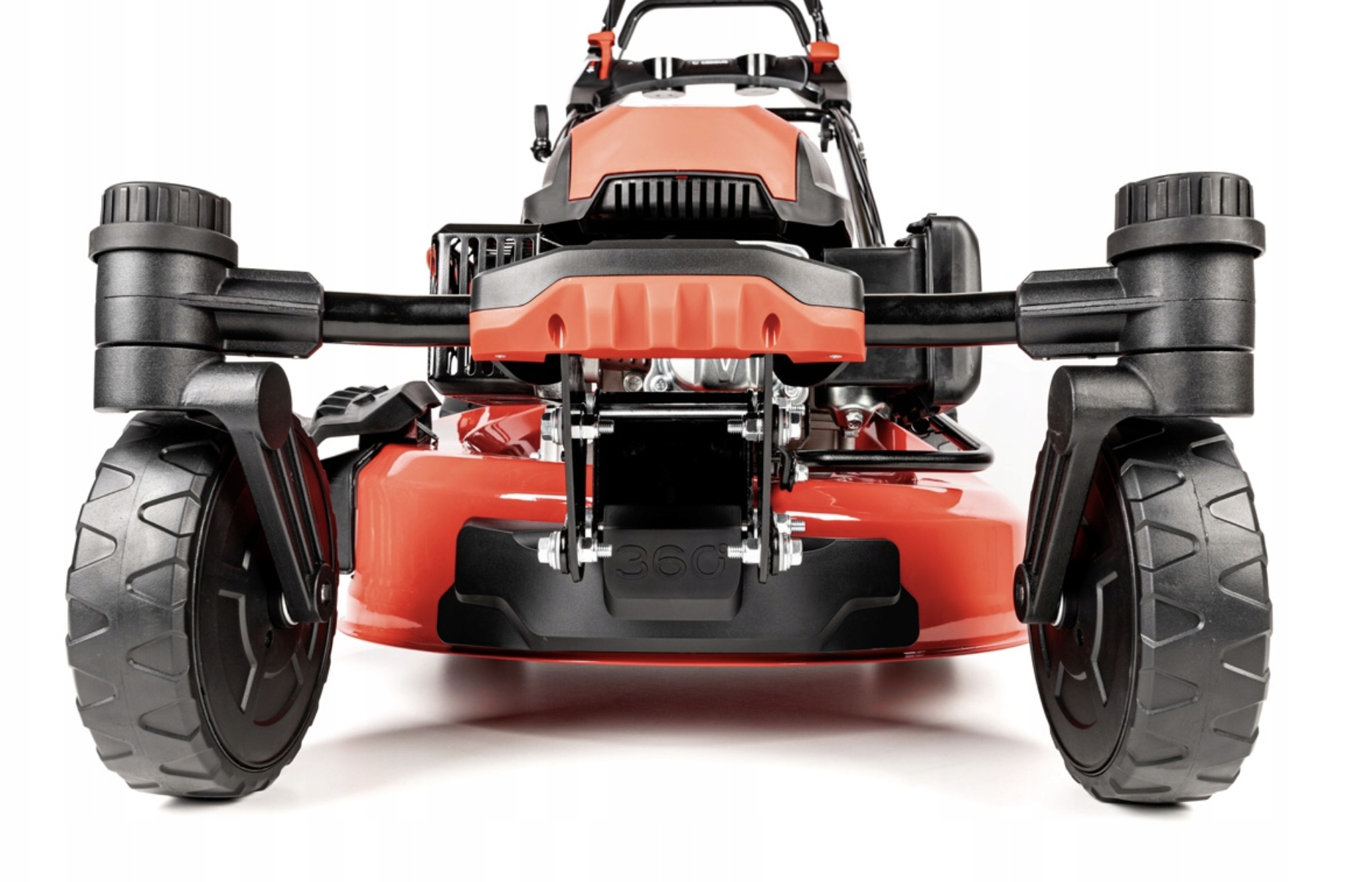 Використання торсіональних передніх коліс . Можливість блокування коліс збільшує стабільність при поєднанні простих, довших розділів. 4 Центральна система коригування швидка та зручна - вона охоплює кілька рівнів різання, що дозволяє підтримувати газон у ідеальному стані протягом усього сезону.