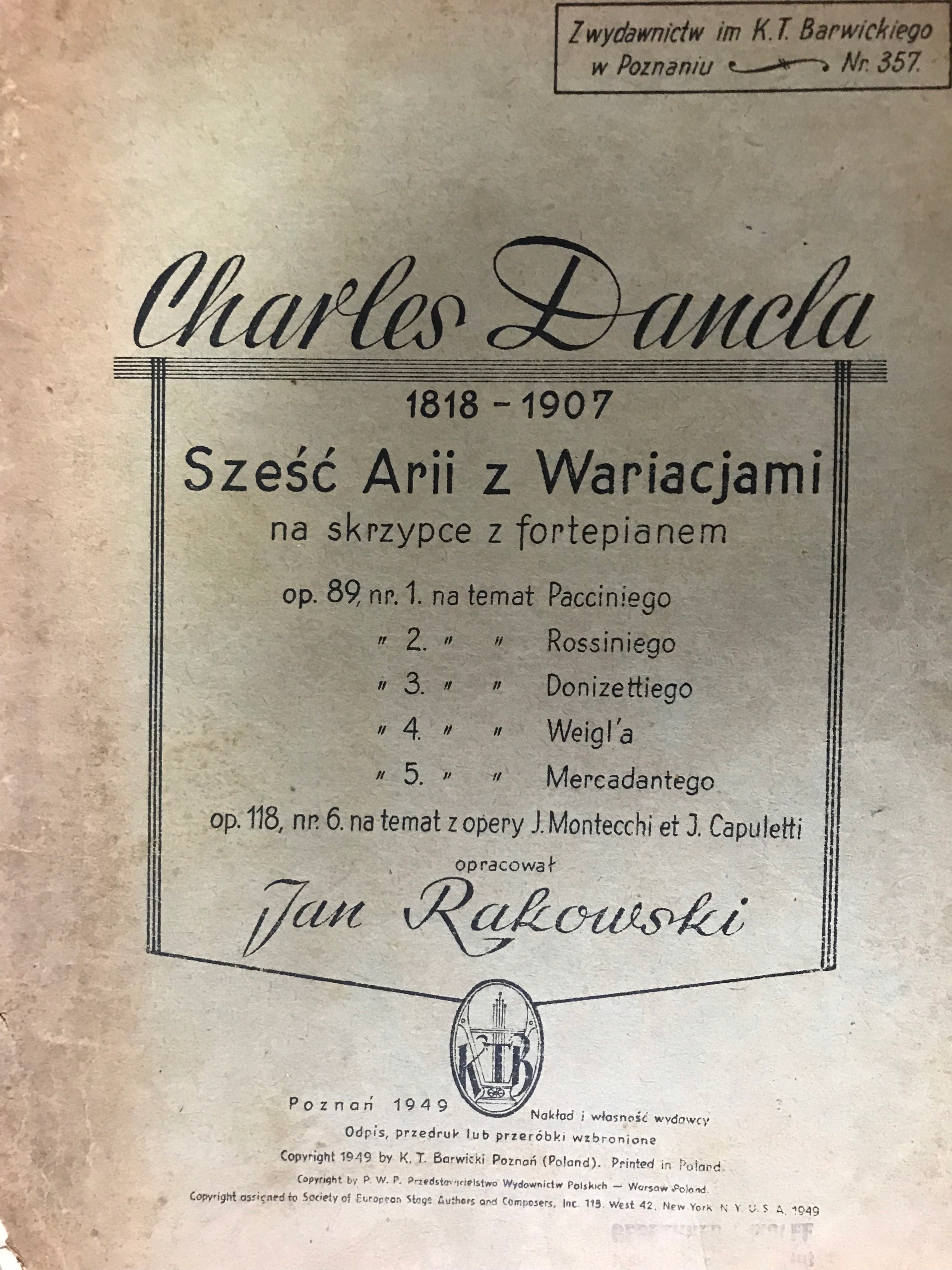 Ch. Dancla Sześć Arii z Wariacjami na skrzypce z fortepian. Nuty 1949 r.