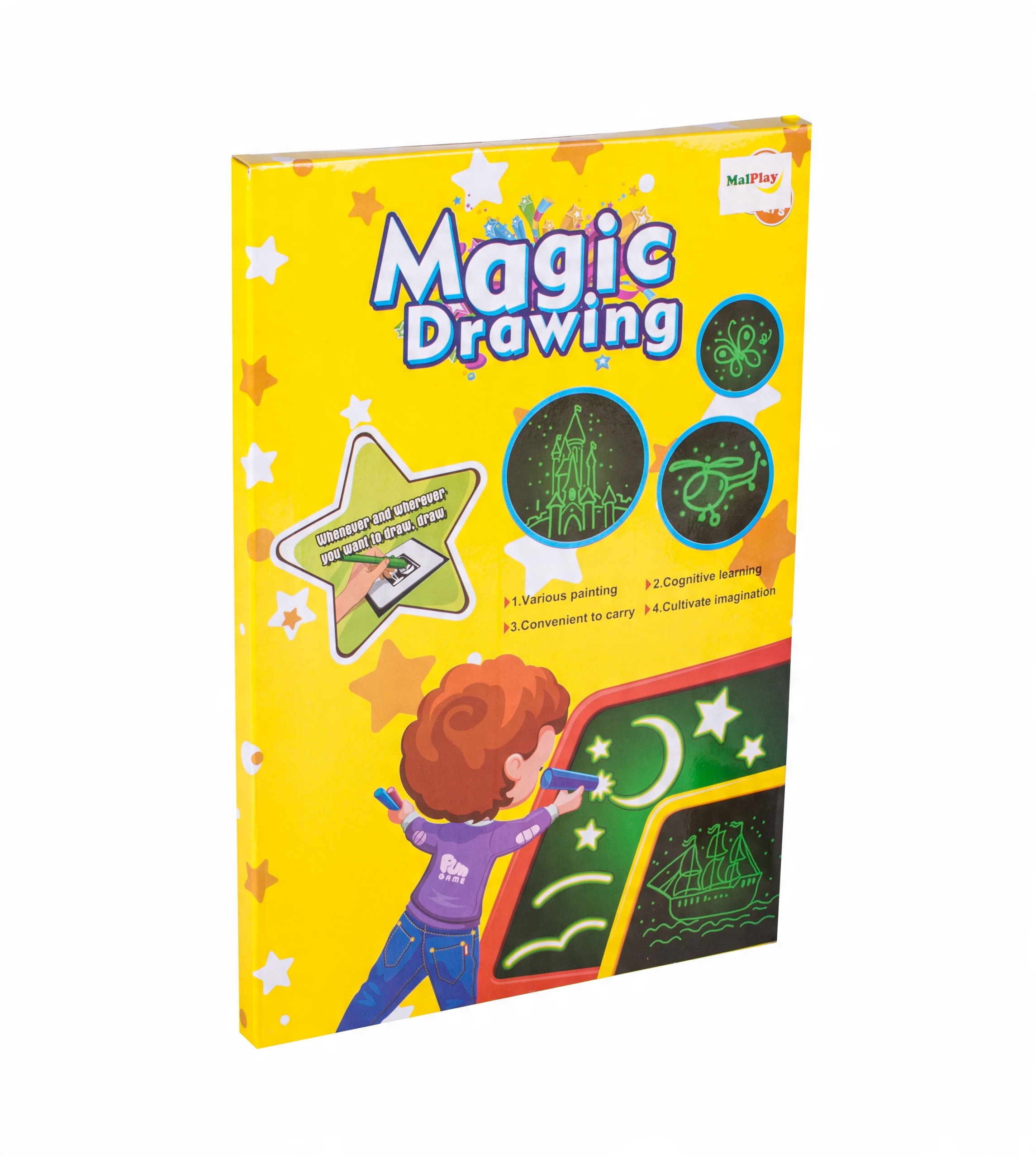 Наш набір призначений для малювання в темряві. Щоб почати грати, утримуйте кнопку на маркері та наведіть його на дошку, створюючи різні форми, візерунки та малюнки.
