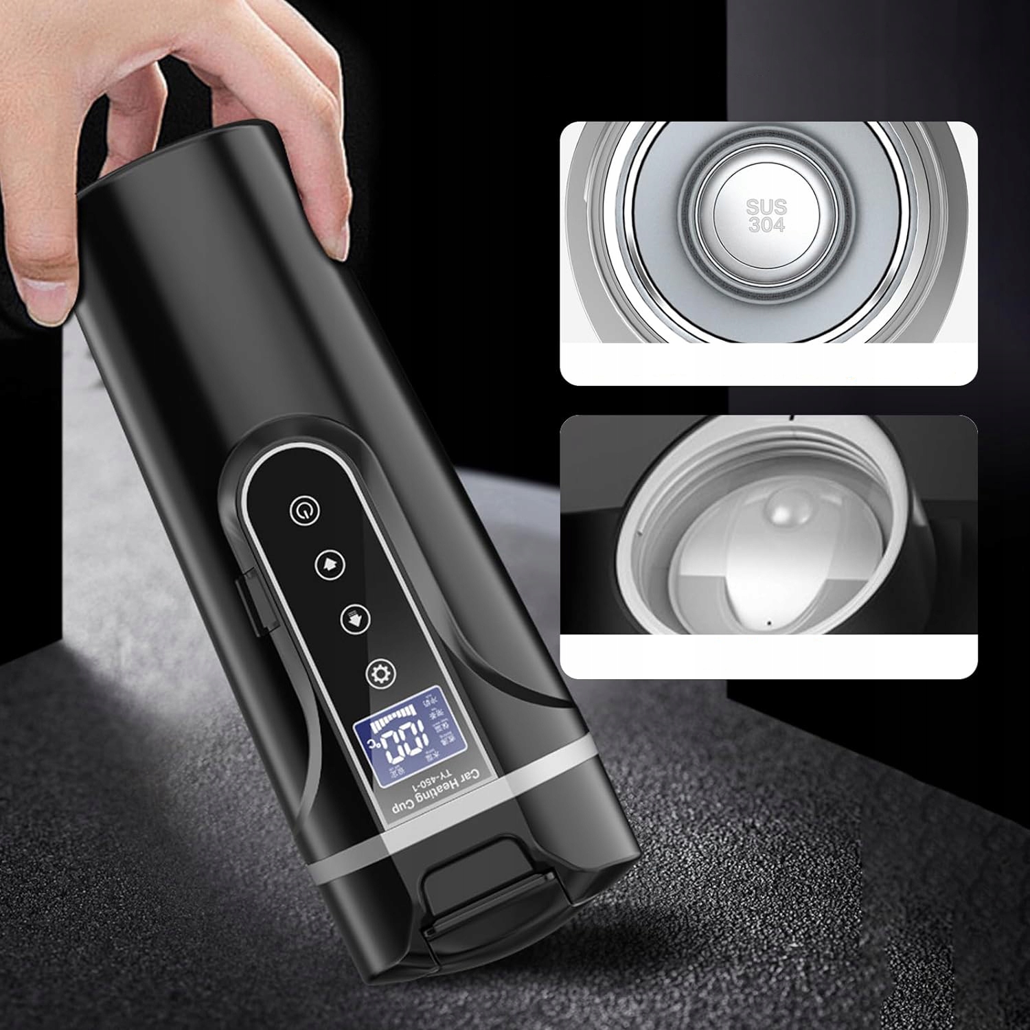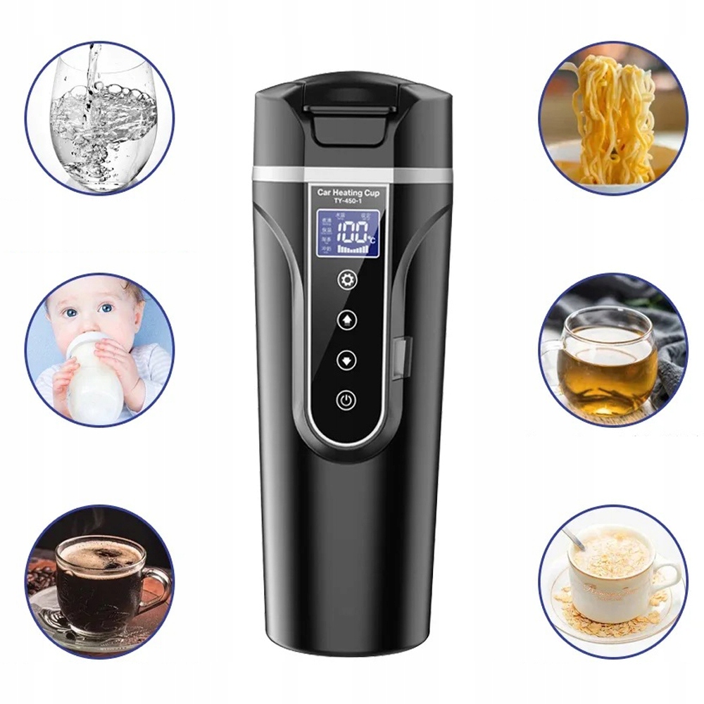 ✅✅✅ ✅✅ безпечний та практичний: Електричний чайник для автомобіля працює від стандартного плагіна для автомобіля, щоб ви могли запобігти перевантаженню. На дисплеї РК -дисплея чітко показано поточну температуру води для запобігання опіків. Konstrukcja pokrywy spręynowej, obsługa Jednym przyciskiem, dzięki czemu można pic wodę jedną ręką i pic gorącą wodę, kawę i mleko w podróż. Zewnętrzna częć kubka wykonanana jest z tworzywa sztucznego o jakości spożywczej dla niemowląt, a wewnętrzna częc z medycznej technologii izolacji próż próż próżniowej 304, ktor Корозійна стійкість і не запаху. У машині ви можете в будь -який час насолоджуватися гарячою водою, кавою або молоком для дитини.