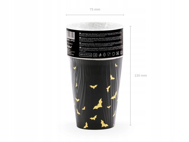 Чашки, тарілки, Хеллоуїн кажани, чорні паперові стакани по 6 шт