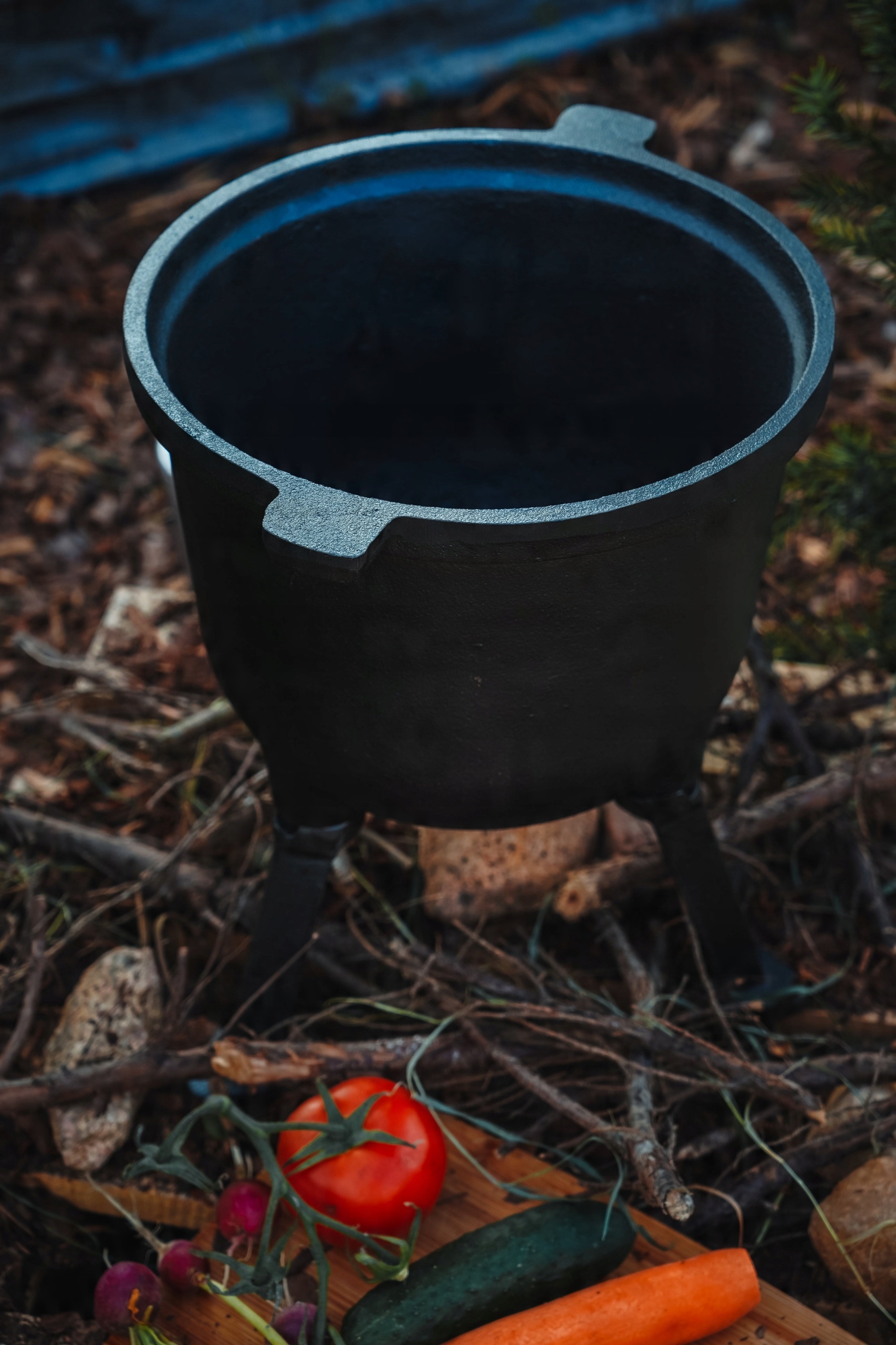 Надійний і міцний казан виготовлений з високоякісного чавунного сплаву. Ідеально підходить для розміщення безпосередньо на вогні, а також для підвішування над ним. Професійний вентиляційний отвір у кришці забезпечує регулювання тиску всередині посудини. Крім того, він має зручну ручку та знімні ніжки.