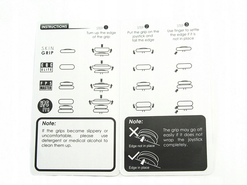 Накладки з високоякісного силікону TPE, завдяки грубій структурі грають ідеально! 4 різні параметри для гравців: SKIN GRIP, CQC ELITE, FPS MASTER і, після поєднання двох накладень, версія FPS PRO!