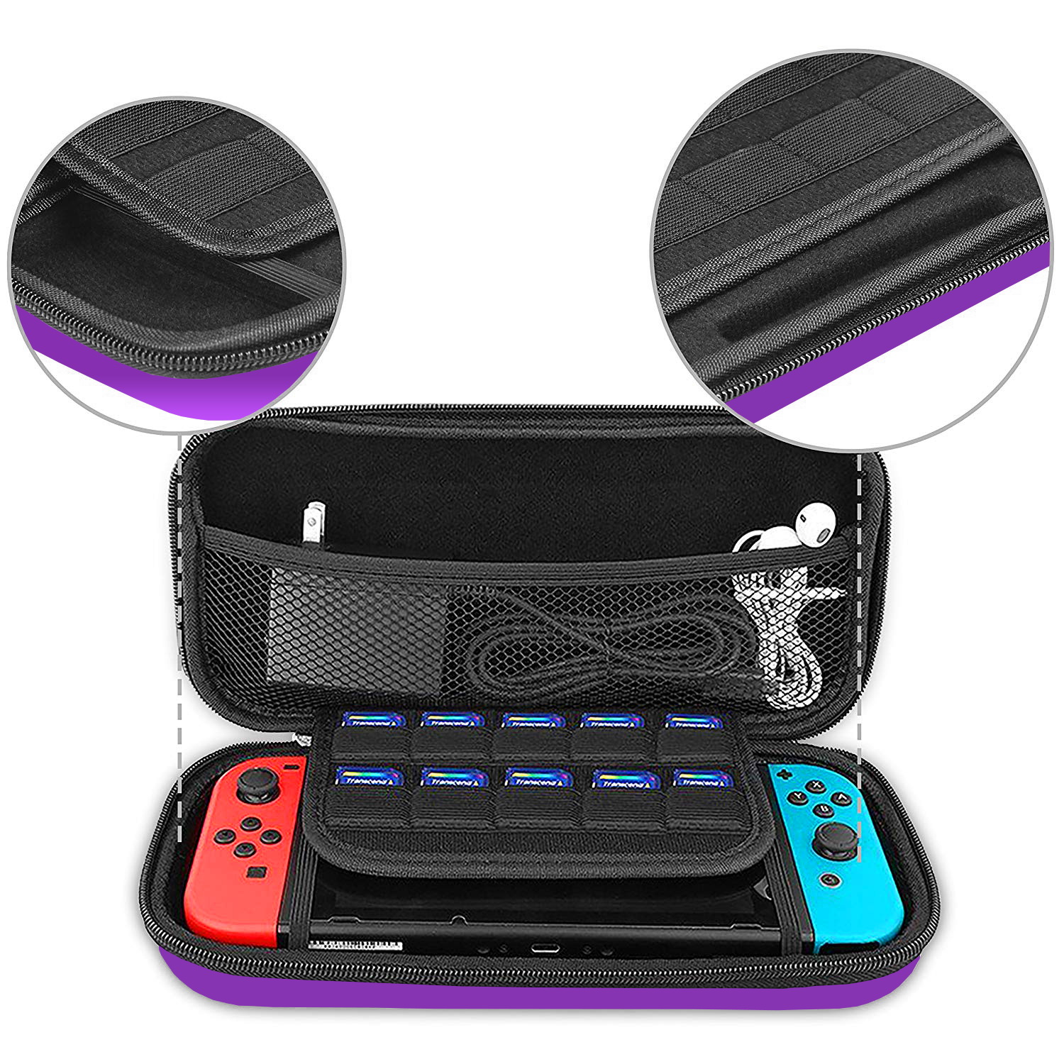Чохол ідеально підходить до вашої консолі Nintendo Switch і OLED Nintendo Switch — він ідеально захищає її. Всередині є спеціальні відділення для 10 ігрових картриджів. У верхній частині чохла є спеціальне місце для зберігання аксесуарів консолі, таких як зарядний пристрій, павербанк, навушники, ігрові бокси тощо. На чохлі також є практичний поводок для перенесення.
