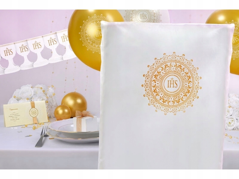 емблемою IHS у золоті. Ідеально підходить для святкування Першого Святого Причастя.