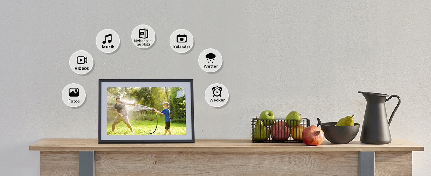 - ⭐ 10.1-дюймовий цифровий фотокадр: обладнаний екраном IPS з високою роздільною здатністю 1280 x 800 пікселів, що дозволяє відображати деталі фотографій та відео. Приховування/випуск зображення, відображення заголовків, регульована яскравість, режим сну та інші потреби. Крім того, ви можете додати SD. Протягом декількох хвилин ви можете додати фотографії чи відео, додати підписи до фотографій та зняти свій досвід, де б ви не були. Ви також можете запросити максимум 512 друзів або членів сім'ї, щоб разом випробувати цей прекрасний момент. Візуальні враження. Він підтримує музику, відео, фотографії, календар, годинник та автоматичне вмикання/вимкнення.