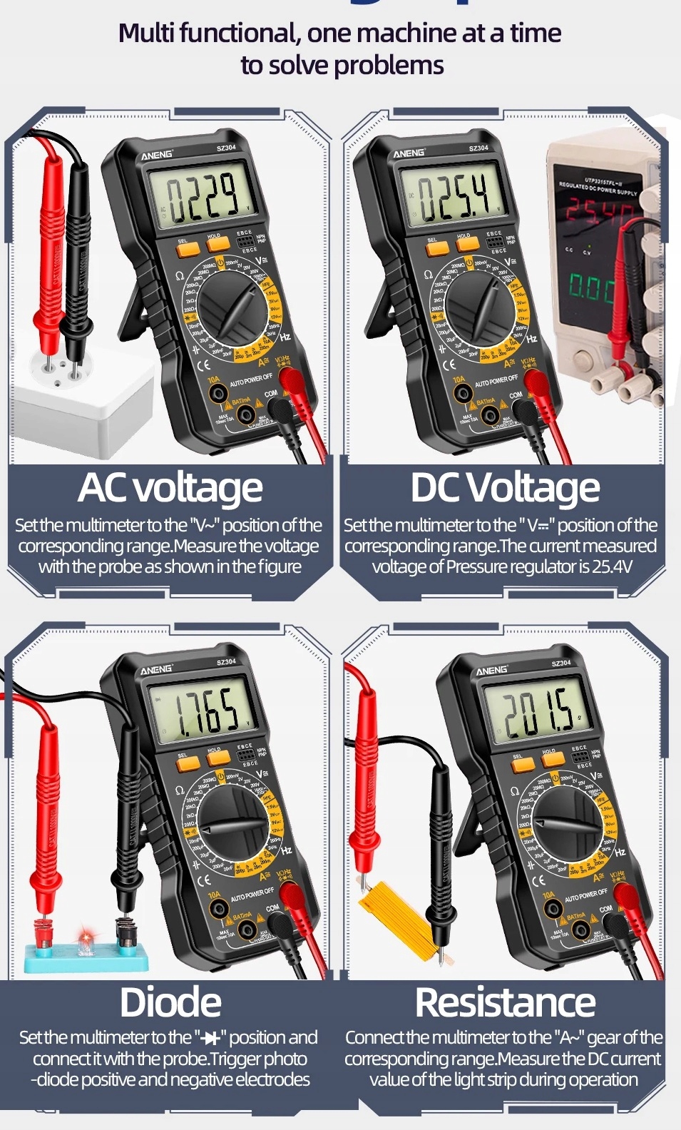 Digital multimeter meter h1> Volmpmeter Ampemeter h1> Annga SZ304 h1> Basic functions: h2> - DC voltage DC
