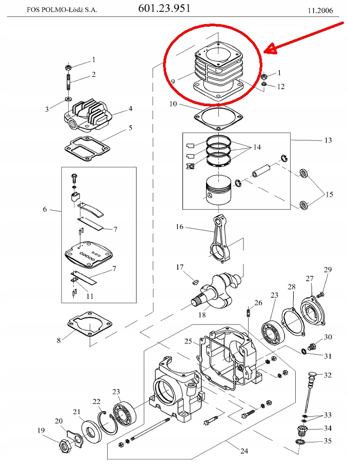 циліндр для виробничих компресорів F.O.S. "Полмо" Лодзі С.А. Тип 601.22 .. , 601.23 .. Після зміни (на основі пластини клапана)