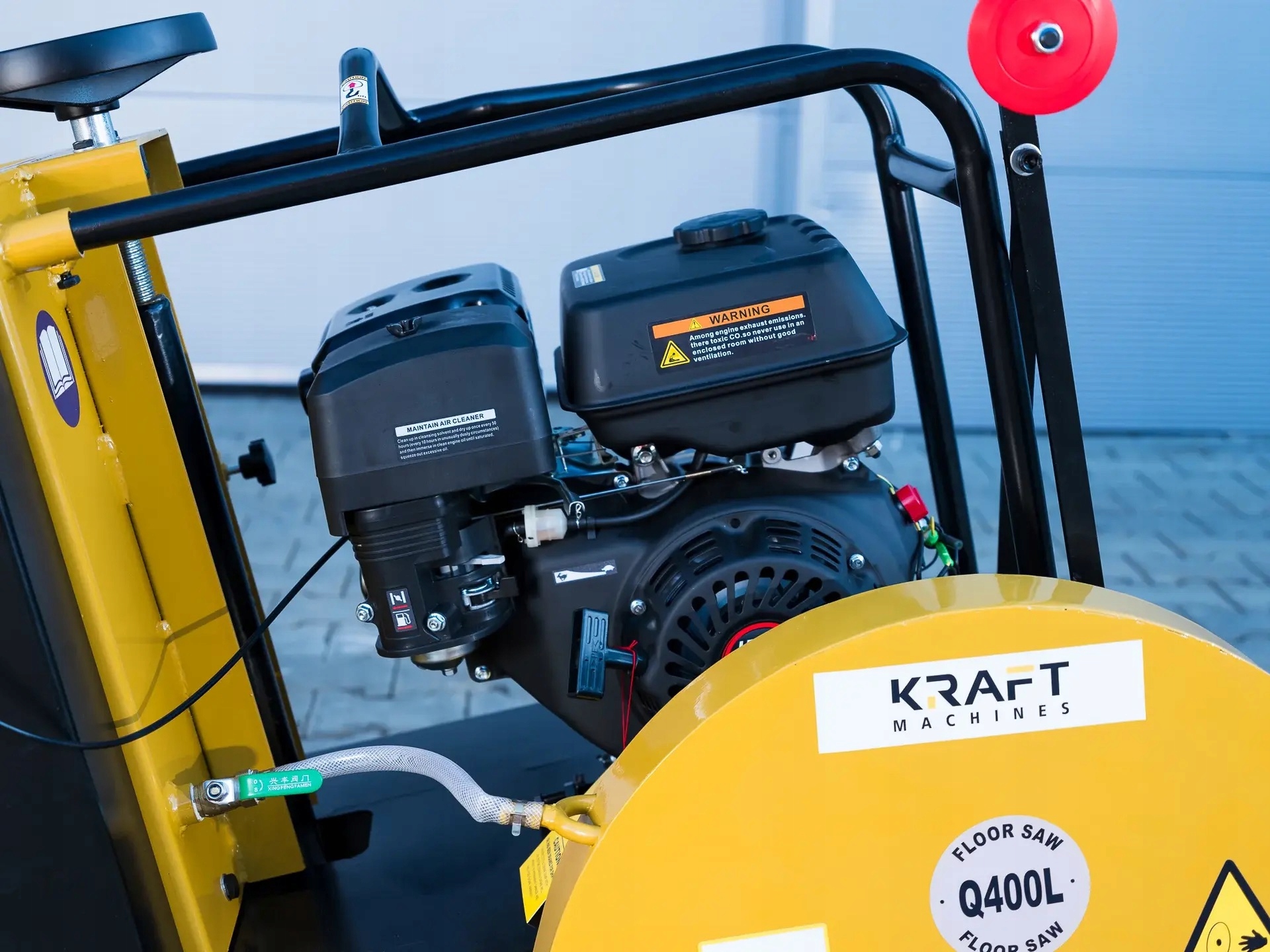 Серце різака - loncin 270f двигун з 9,0 к.с. і ємністю 270 см³. Завдяки цьому пристрій досягає швидкості 2950 об/хв , що дозволяє швидко і плавно вирізати навіть найскладніші поверхні. У поєднанні з можливістю використання дисків з діаметром від 350 мм до 500 мм, різак забезпечує універсальність - він працює як з більш ніжними обробними роботами, так і з вимогливими завданнями, пов'язаними з різанням товстих шарів бетону або асфальту.