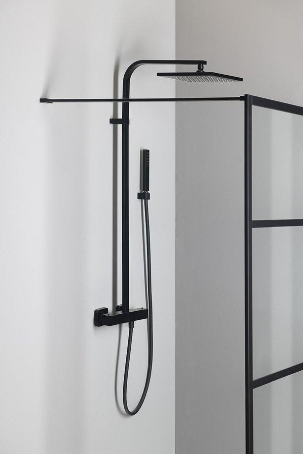 стабільності забезпечується перпендикулярною стабільністю з тривалою. Його довжина може бути пристосована до потрібного виміру. Зсередини скло ідеально гладке. Крім того, він покритий покриттям скляним покриттям для легкого обслуговування. Промисловий дизайн підкреслюється чорними килимками алюмінієвими профілями, які оточують скло.