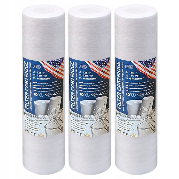 вставки з поліпропіленової тканини (мабуть, найкращі механічні внески, доступні на ринку). У наборі ви отримаєте 3 ПК. Життя картриджів залежить від кількості та якості відфільтрованої води.