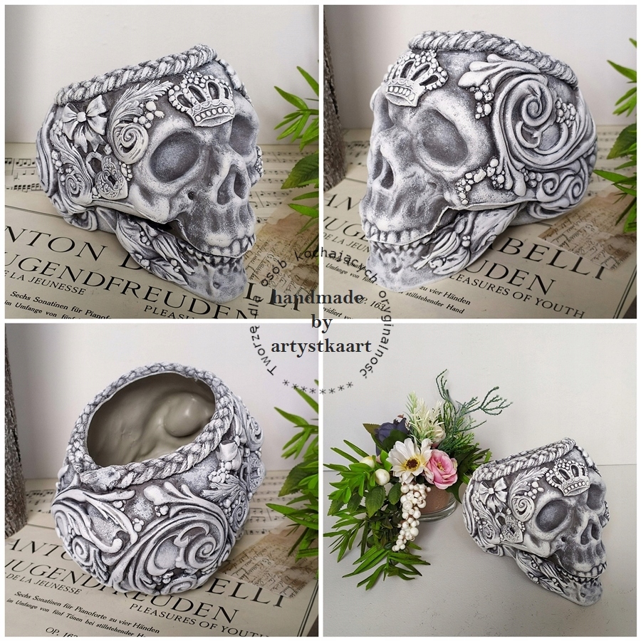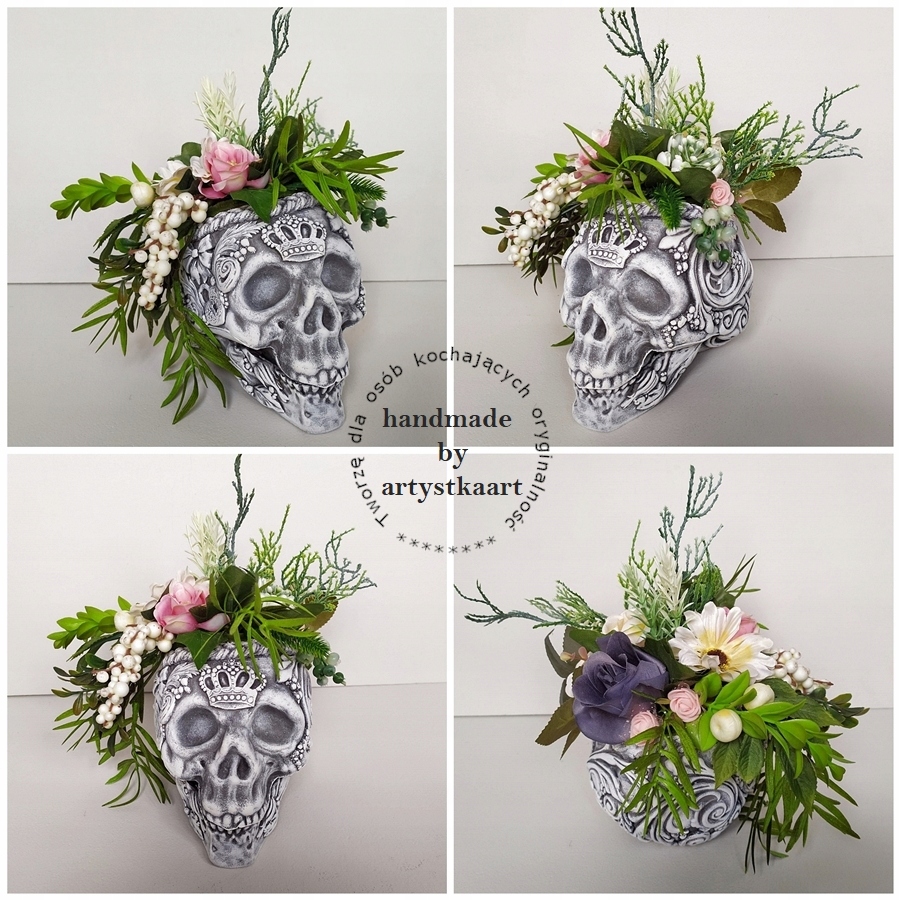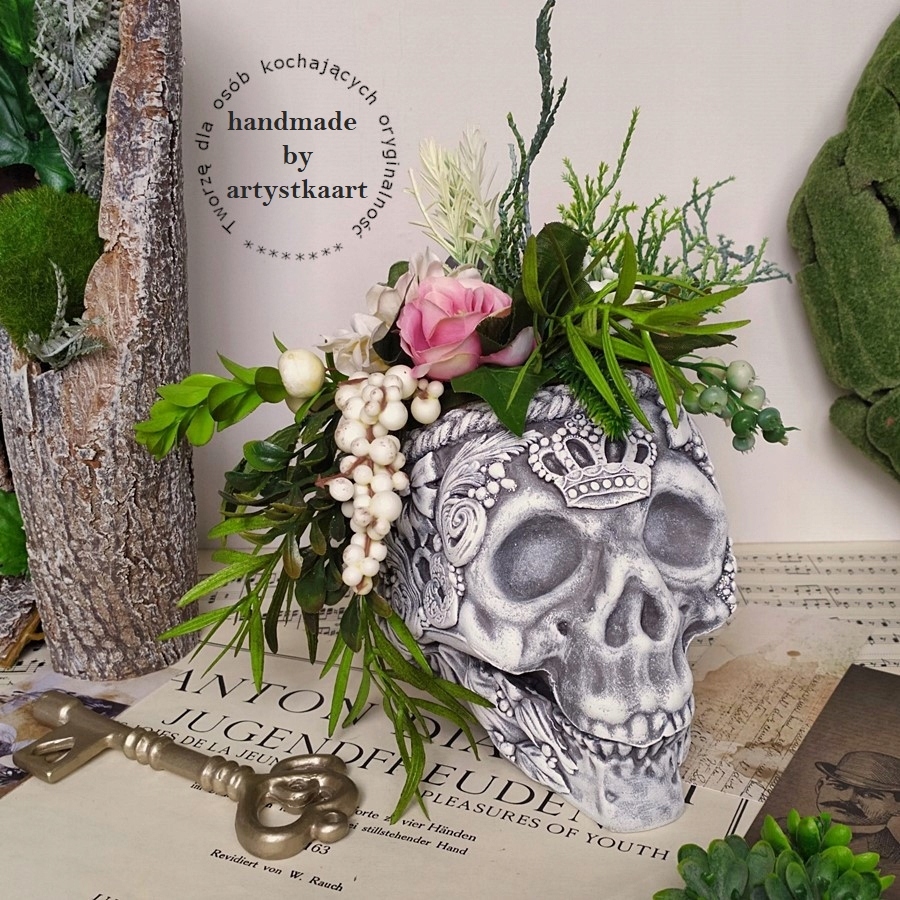 CZASZKA dekoracyjna z kompozycją kwiatową FIGURKA