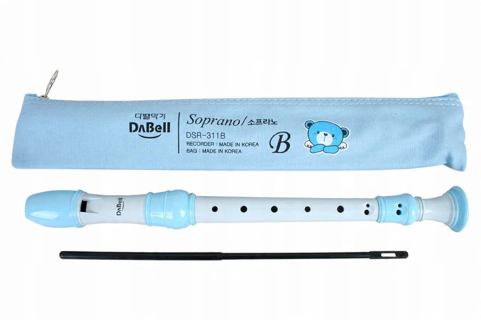 Флейта для сопрано з пластику. Конструкція з трьох частин світло-блакитного (світло-блакитного) кольору.