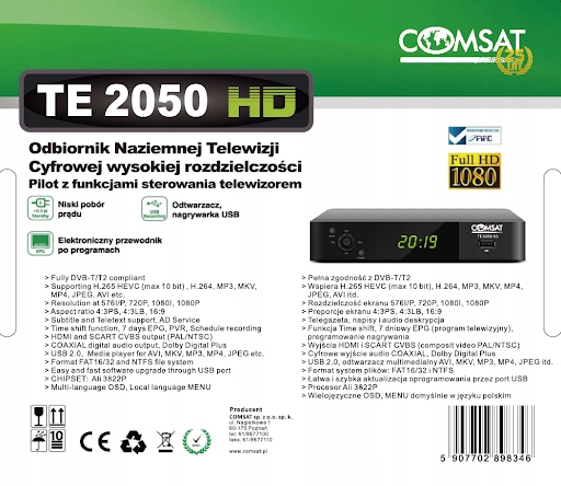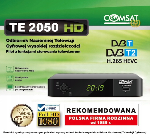 Приобретая «COMSAT TE2050HD H.265 HEVC DVB-T2 ТВ-тюнер-декодер», вы можете быть уверены, что данное изделие из каталога «Тюнеры» вы получите через 5-7 дней после оплаты. Товар будет доставлен из Европы, проверен на целостность, иметь европейское качество.