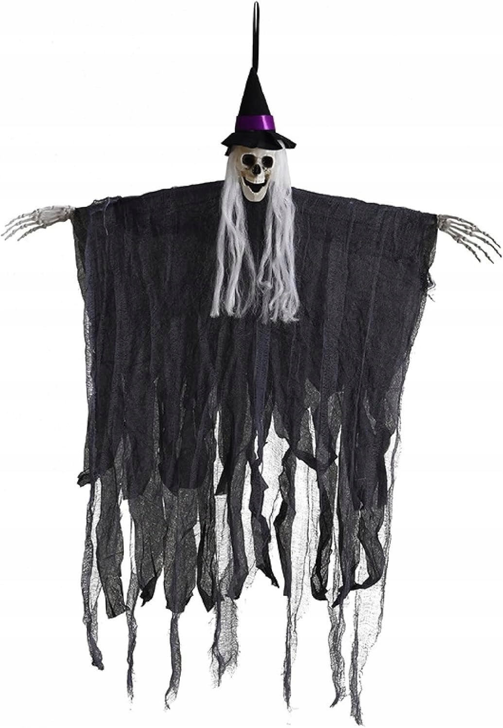 Готуйтеся до незабутнього Хелловіну з підвішеним скелетом у костюмі відьми! Ця реалістична та моторошна прикраса миттєво створить похмуру атмосферу у ваш дім, сад або тематичну вечірку.