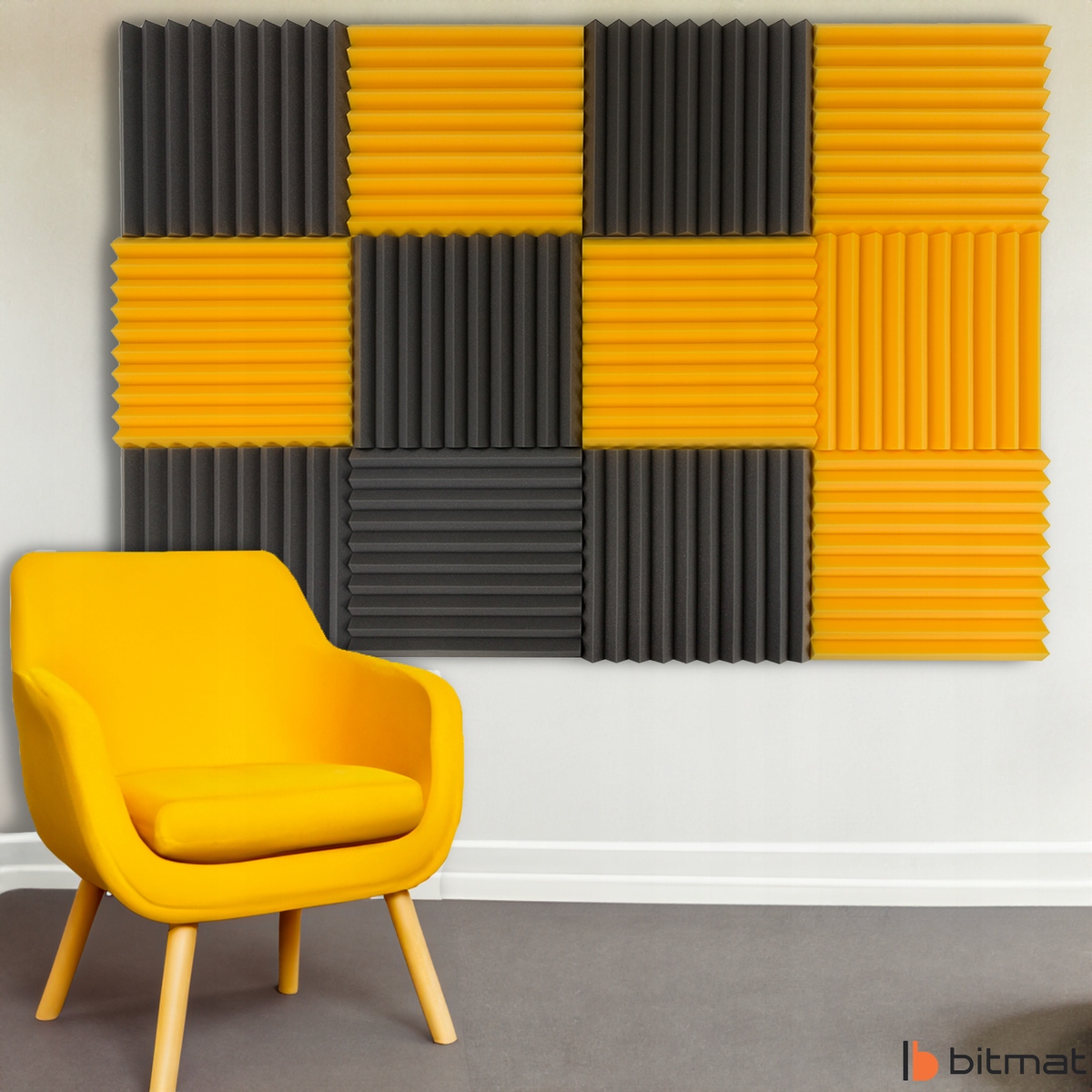 2x клинова акустична панель сірого (графіт) + 2x жовта клинова акустична панель