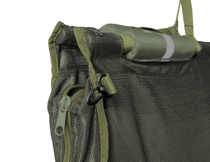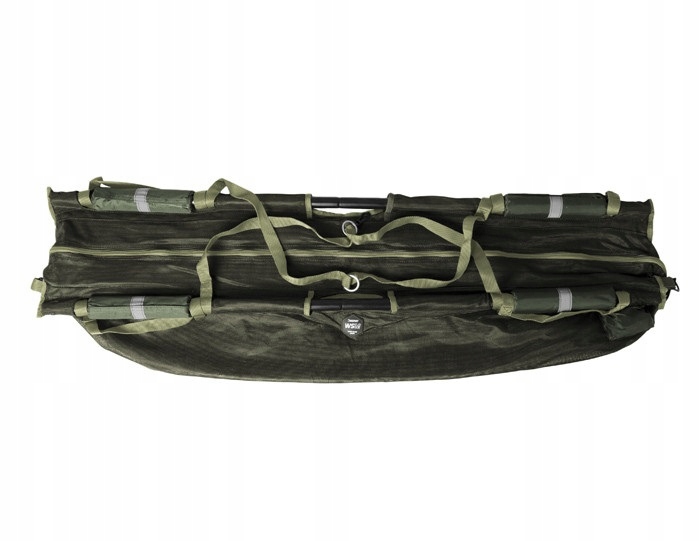 зважування мішка з сильного сітчастого матеріалу, який також може бути використаний як мішок для зберігання риби, оскільки він має плавці та сітчасті матеріал. Завдяки світловідбиваючим стрічкам на плавцях ви можете побачити мішок у воді, навіть коли ви світите передньою лампою в темряві. Матеріал сітки зменшує загальну вагу мішка, а при підйомному рибі або при перенесенні води витікає воду і не перевантажує матеріал, тому зважування є більш точним. Масивні блискавки розташовані з обох боків, а також у верхній частині, завдяки якому WSM може бути майже повністю розстебнутим, щоб забезпечити приємніші та легші маніпуляції з рибою. Сильні алюмінієві труби з діаметром 25 мм можна легко скласти, тому вони не потребують великого місця під час транспортування. Доступні три довгі текстильні смуги, тому повісити його на штатив дійсно комфортно і просто. Ці смужки мають металеві стібки, щоб повісити сумку на гачку. Щоб полегшити переміщення сумки, в кутах сумки є чотири коротші смуги. Він також має 4,5 метрів для прив’язки. Завдяки цій системі, прив’язка сумки на березі дуже безпечна. Лінія розміщується в інтегрованій і стриманій сумці збоку сумки. У верхній частині та збоку сумки є затискач, який використовується для прикріплення путівників на блискавці, щоб запобігти небажаному отвору сумки. Також можна придбати додаткові кліпи, які також можна використовувати для прив’язки.