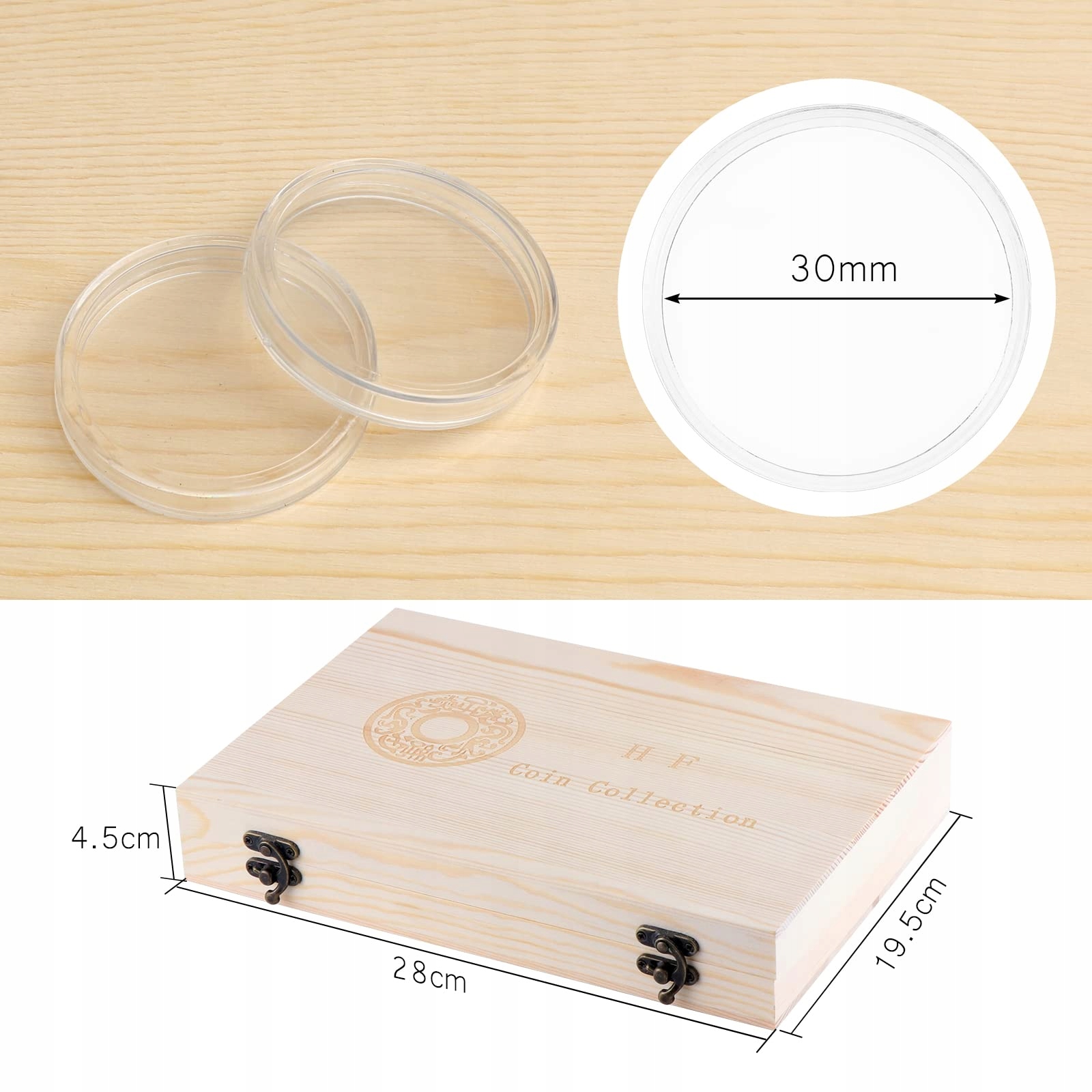 - ✔️ 【Дерев’яний ящик для зберігання монет】: ящик для зберігання монет виготовлено з високоякісної соснової деревини з має поліровану поверхню та має розміри приблизно 280 x 190 x 45 мм. Вміщує 100 пластикових капсул для монет, практична та міцна, ідеальна для колекціонування монет. різних розмірів.