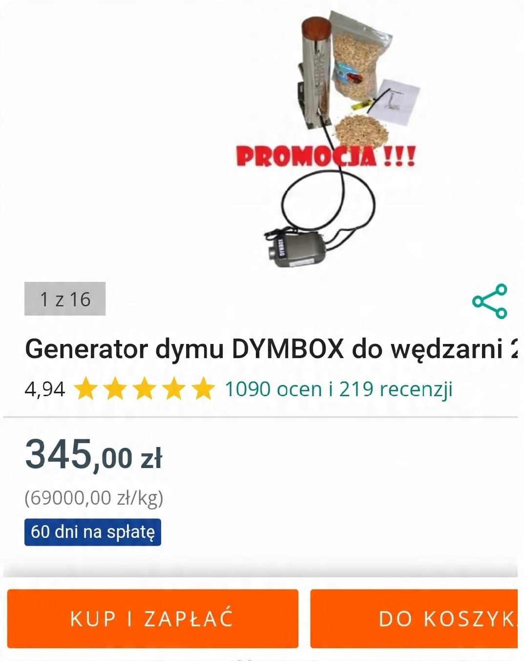 Праворуч фото з одного з аукціонів Allegro, де генератор отримав понад тисячу п’ятизіркових відгуків про продукт.