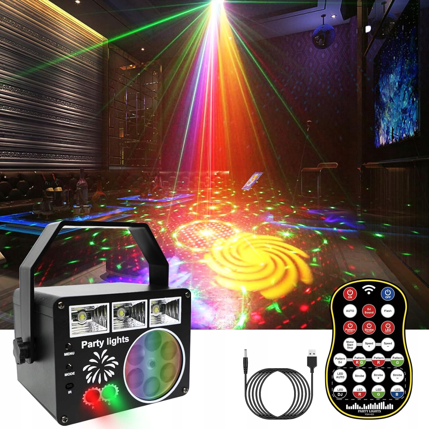 🧡【Сценічний світильник 3 в 1】 Цей оновлений дискотечний світильник 3 в 1 включає обертовий стільниковий світло, зелене та зелене світлодіодне світло та біле світлодіодне світло зі стробоскопом/УФ-хвилею. Поворотний роздільний стільниковий світильник має 4 візерунки червоного, зеленого, жовтого та синього кольорів, які можна розмістити окремо або окремо. Червоні та зелені вогні мають 60 атрибутів, які з’являються та створюють потужну атмосферу.