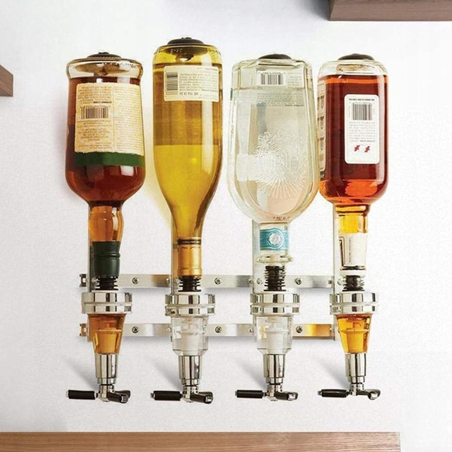 🍻🍻 Наш настінний винний сепаратор має 4 пружинні ручки, який може вмістити пляшки різного розміру до 1 л.
