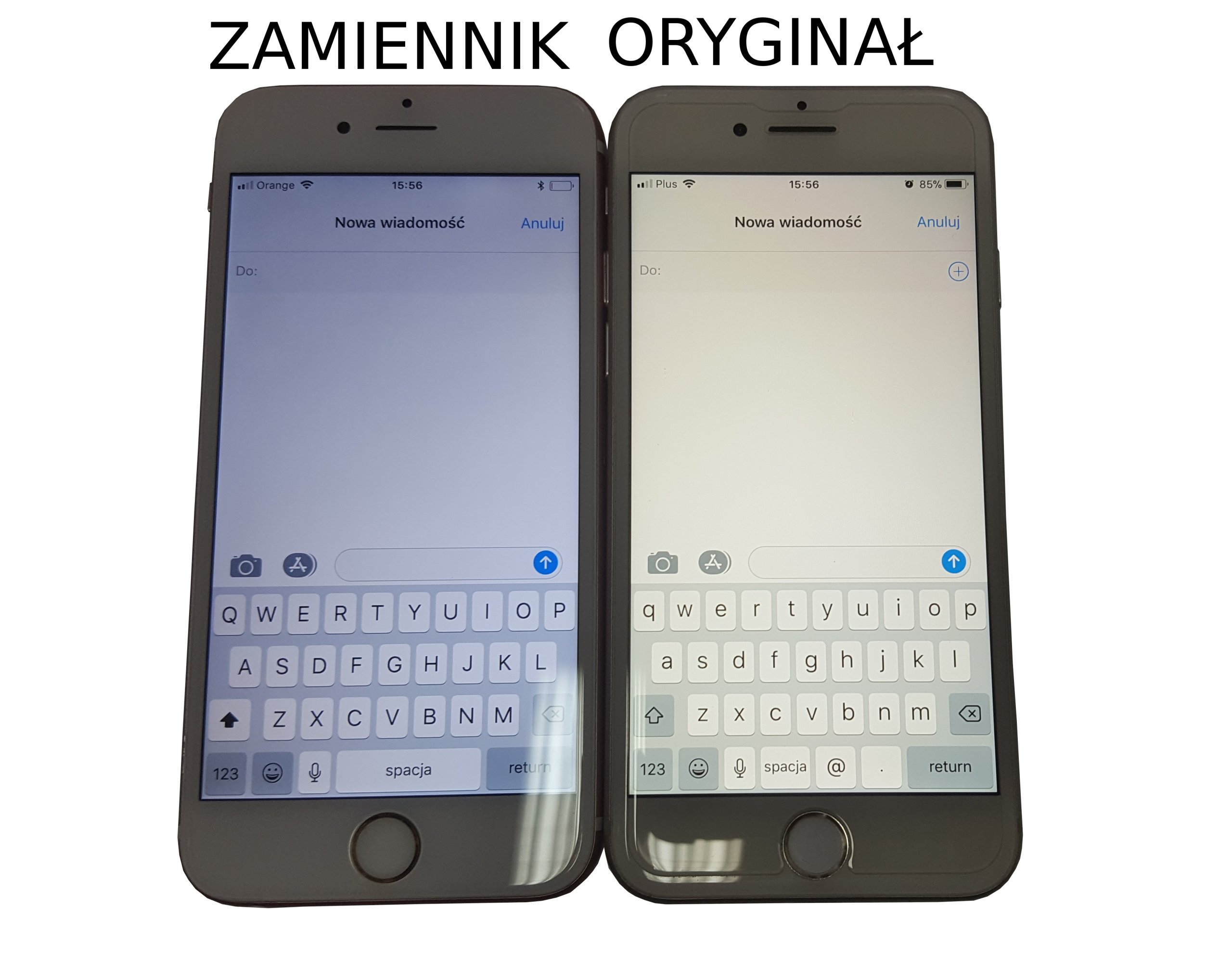 З правого боку телефон має оригінальний відремонтований дисплей Retina, а з лівого боку можна дивіться ту саму модель телефону, яка має найякіснішу якісну заміну. Різниця в якості відображуваних кольорів помітна неозброєним оком.