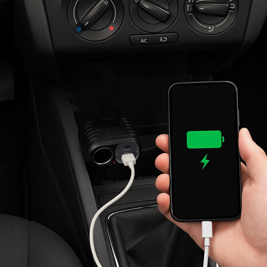 У дистриб'ютора є два розетки, що дозволяє одночасно з'єднувати два пристрої. Ви можете легко зарядити телефон і планшет, і в той же час постачати відеомагнітофон, навігацію GPS або Bluetooth передавач. Це ідеальне рішення для людей, яким потрібно одночасно використовувати кілька аксесуарів.