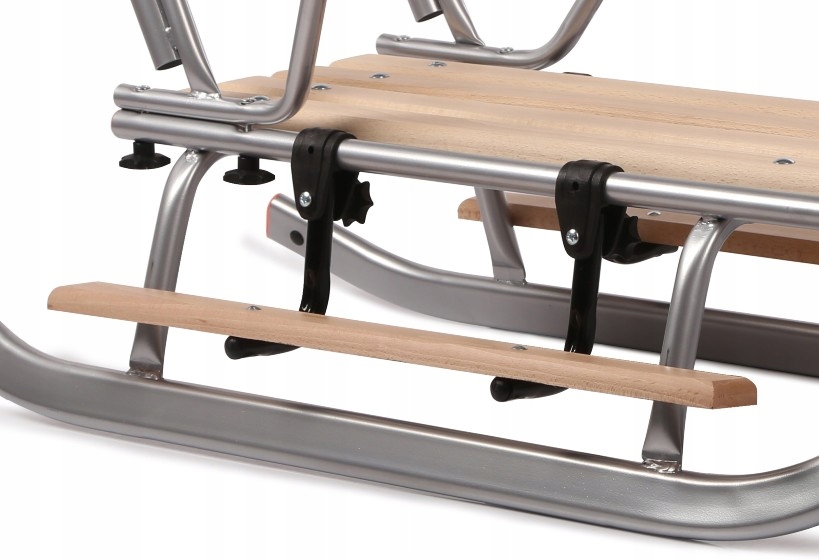 Санки постачаються зі спинкою та підніжками, які кріпляться гвинтами, які включені в набір. Міцність саней - 150 КГ. Крім того, в передній частині матраца є еластична стрічка, розміщена на передній частині сидіння, яка запобігає зісковзуванню матраца з санок.