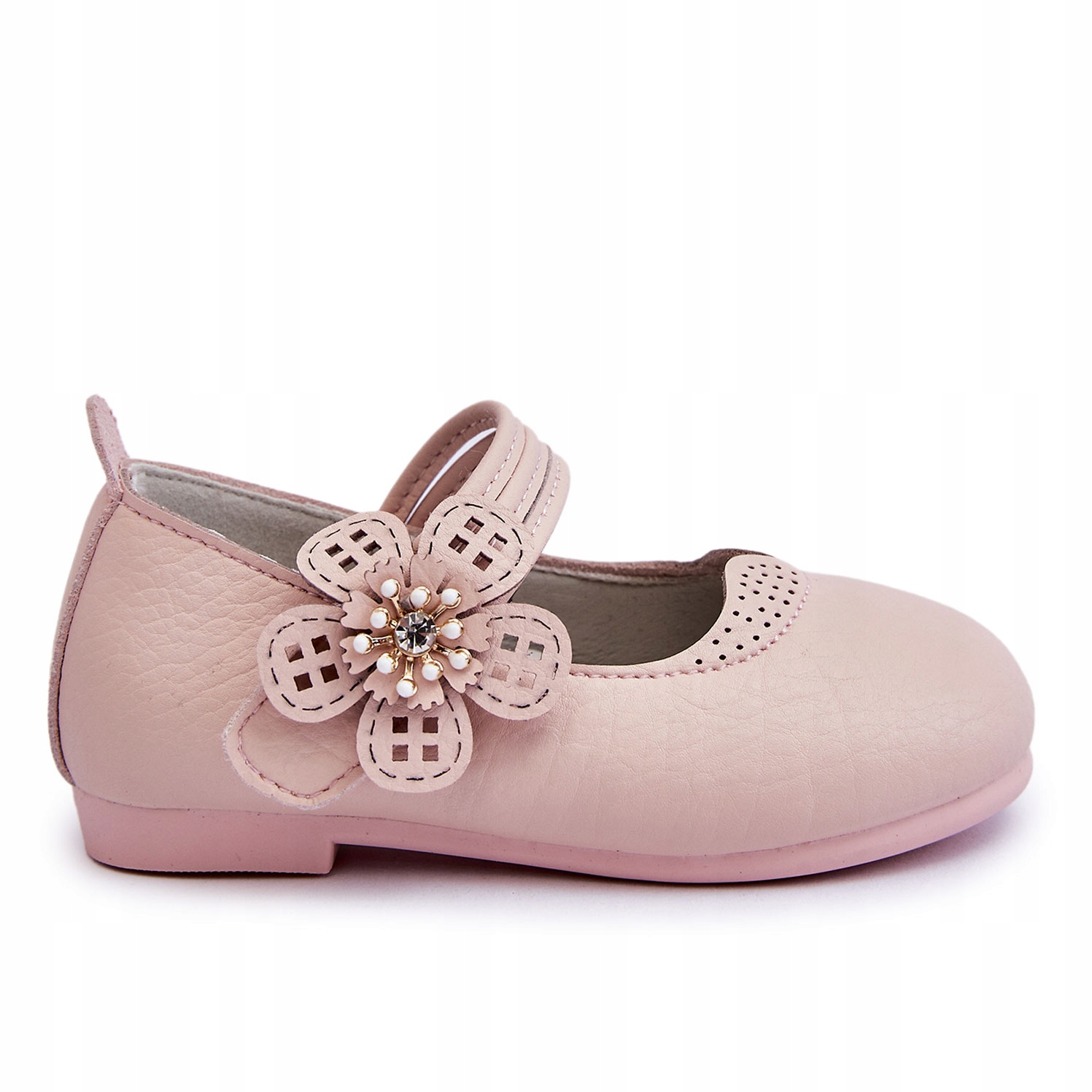 ДИТЯЧІ ШКІРЯНІ БАЛЕРІНКИ З РОЖЕВОЮ КВІТОЧКОЮ 30