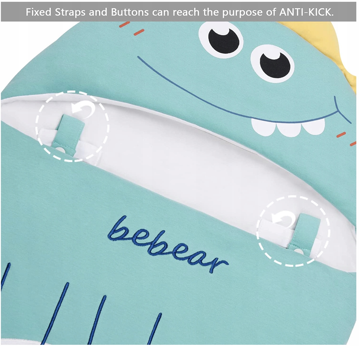 Дитячий спальний мішок Bebamour Anti Kick Safe Nights Cotton Baby Sleeping Bag 2.5 Tog 0-18 Months і старше Cute Baby Boy Girls Sleeping Bag Baby Wrap Blanked (Dino / 50-90 см / Для 0-18 місяців) b>