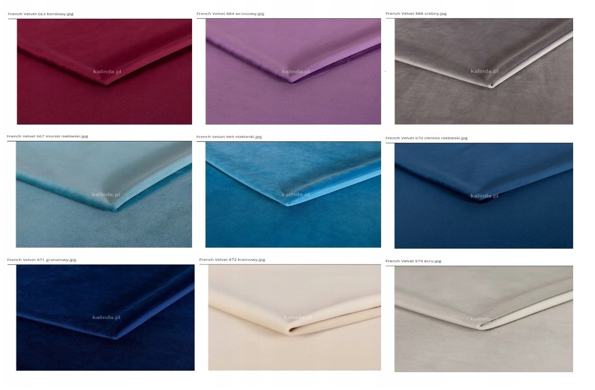Французький оксамит - плюшева тканина меблів, дуже приємна на дотик з яскравим і насиченим асортиментом кольорів. Цікаво для вітальні, кафе, дитячих та офісних меблів. Тканина буде працювати в мультиколених з'єднаннях. Стійкий до стирання, легко підтримувати обмежену здатність до поглинання рідини. Тканина-антибактеріальна 4-5