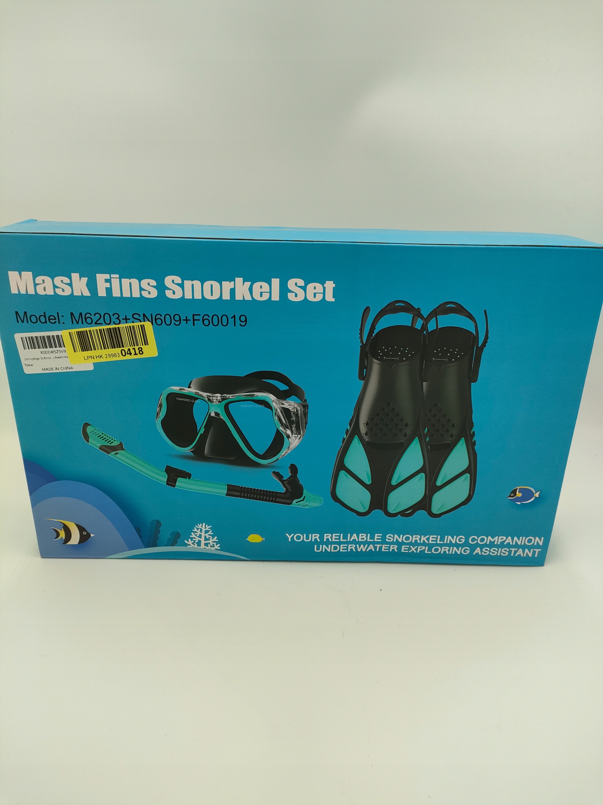 - Set 3 in 1 : mask, tube and fins + travel bag