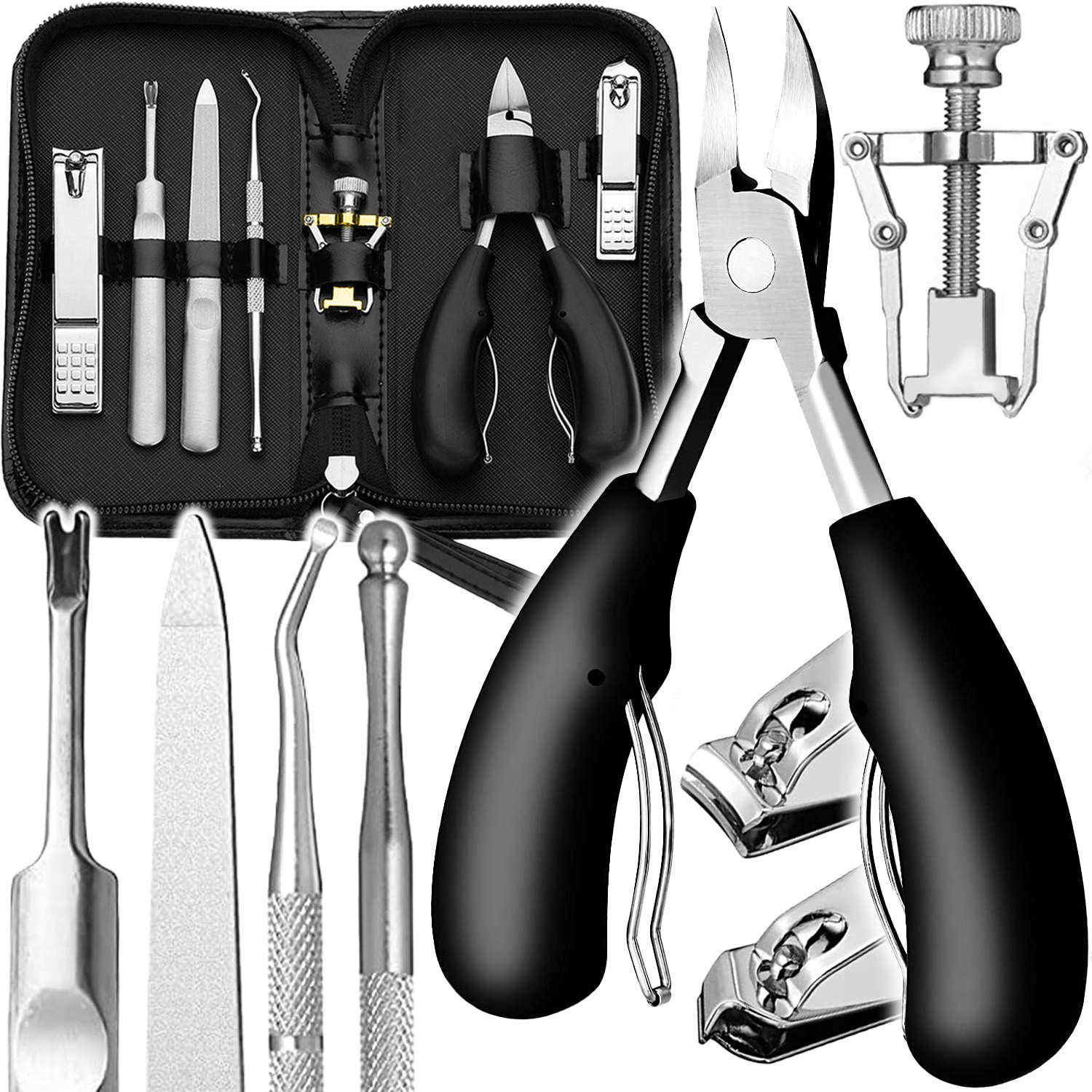 ⭐ Large 8in1 set: Simple cutters, curved cutters, file, leather cutter, cleaning arst, nail curve lever, case