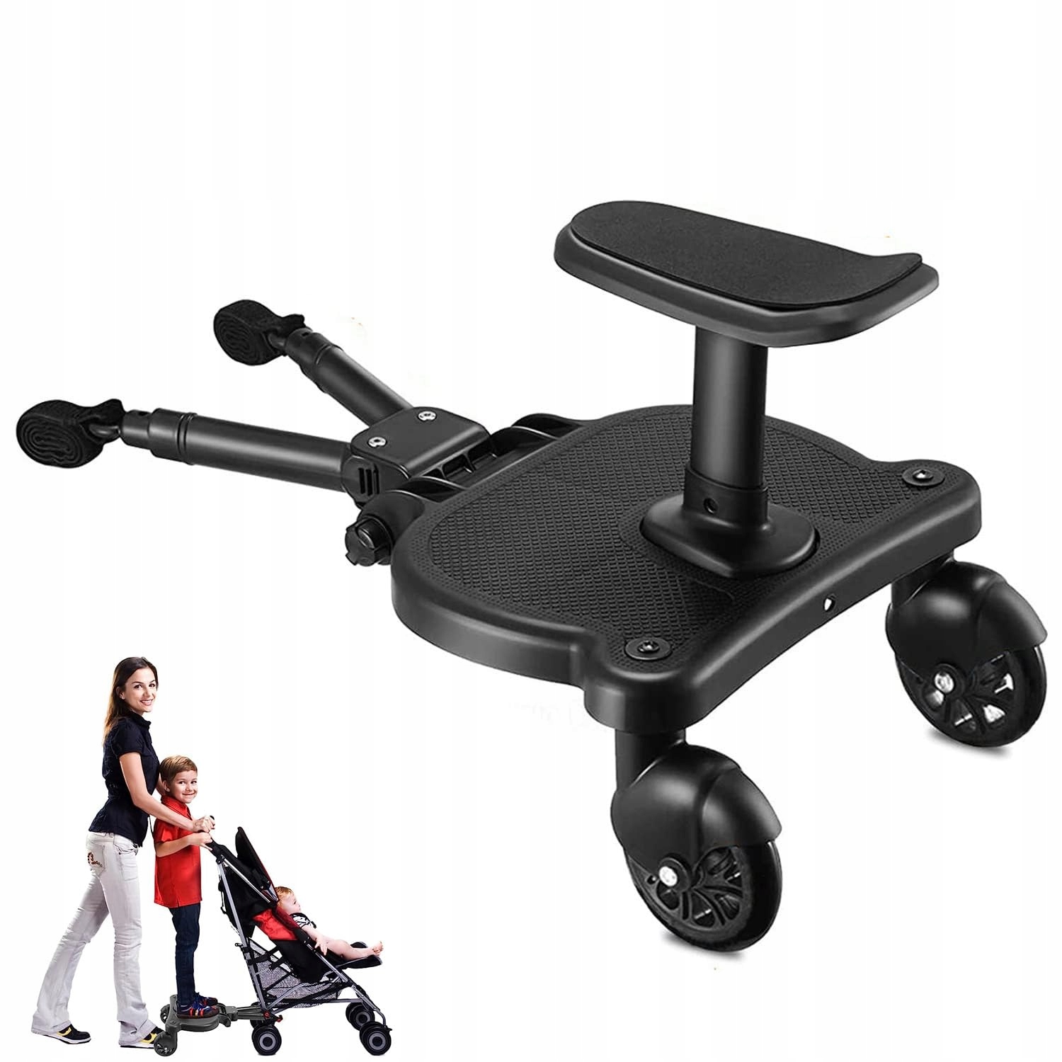 Після використання цієї дитячої педалі діти можуть сидіти або стояти на виробі, що робить подорож більш комфортною, а ви можете краще піклуватися про неї ваших дітей, підходить для більшості колясок на ринку. Вам не потрібно хвилюватися, чи підійде він до вашої моделі коляски.