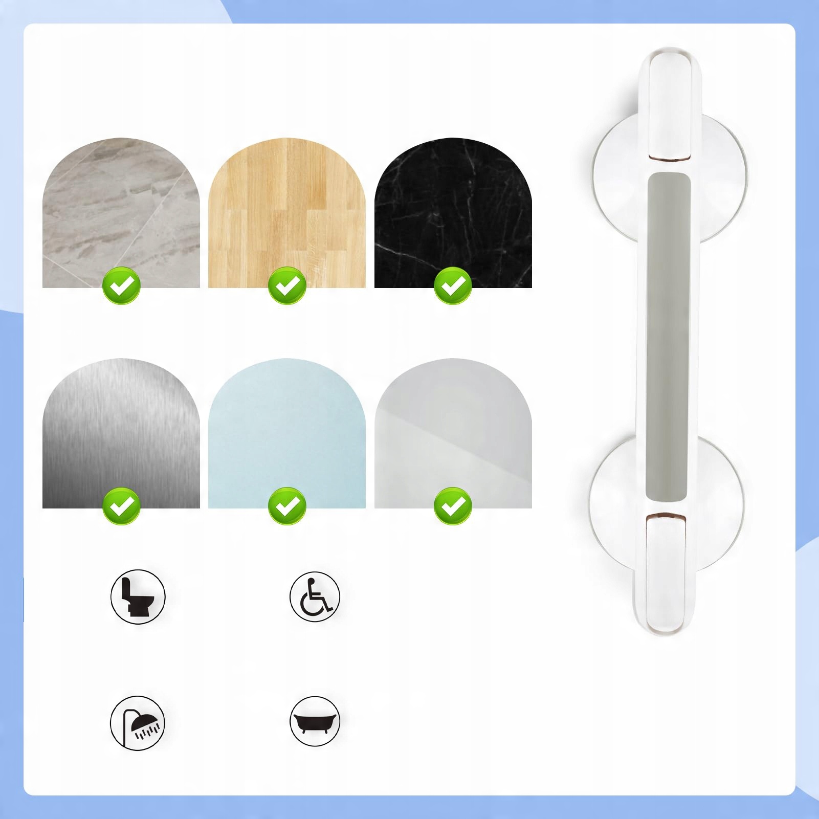 - ✔️【РОЗУМНИЙ ДИЗАЙН】: Міцна конструкція присоски працює на будь-якій непористій плоскій поверхні, включаючи гладку плитку, скло , фарфор або скловолокно. Цей тримач ідеально підходить для розміщення у ванній, душі, біля туалету, біля сходів або поруч зі стільцем.