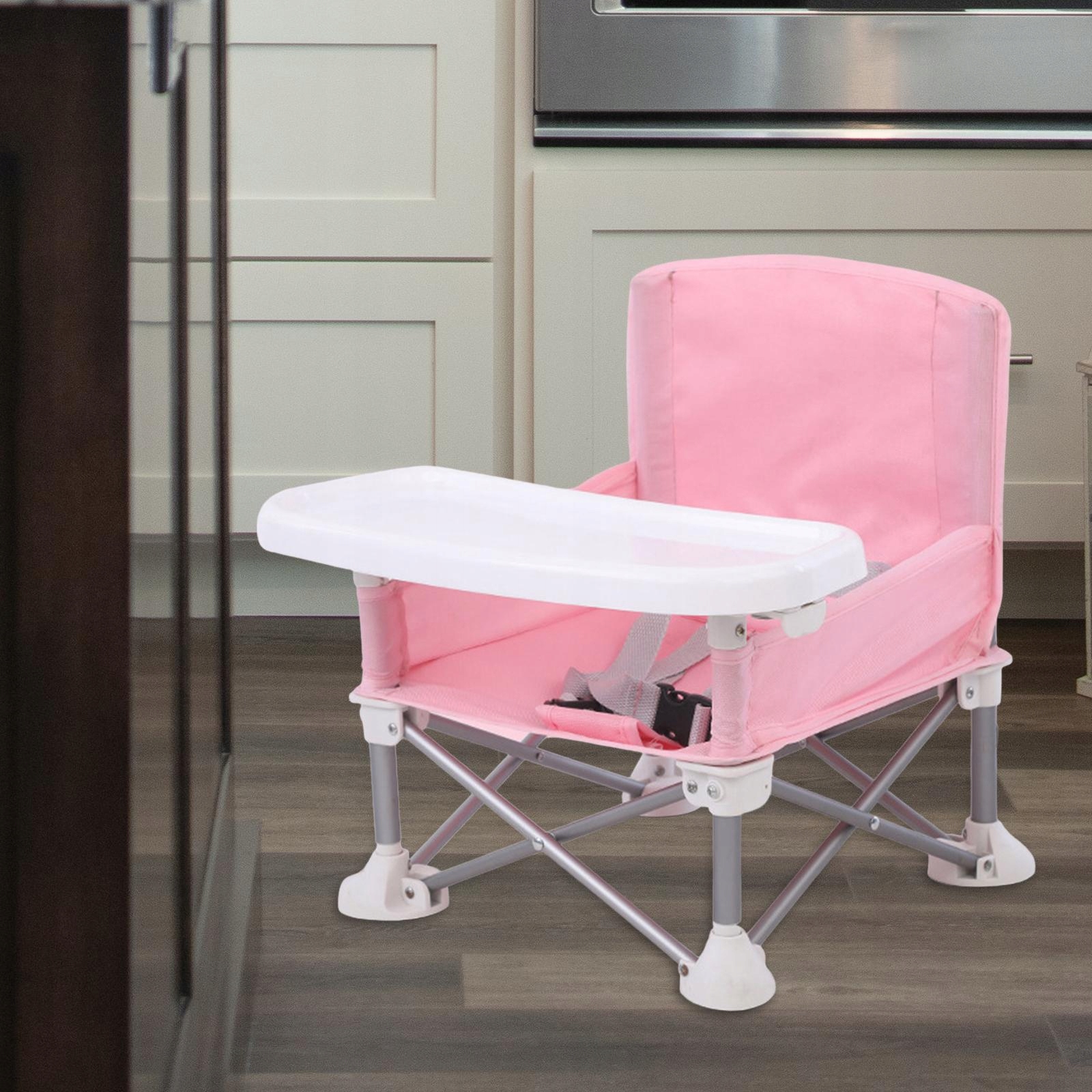 Дорожнє крісло-бустер із дорожньою сумкою та підносом для їжі, відкритий пляжний стілець, рожевий