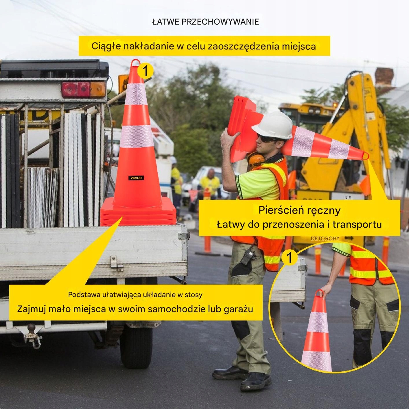 помаранчеві стовбури оснащені срібними світловідбиваючими кільцями, які забезпечують видимість в діапазоні 360 ° як вдень, так і вночі. Завдяки цьому, ці дорожні куточки - це ідеальний вибір, який забезпечує безпеку.