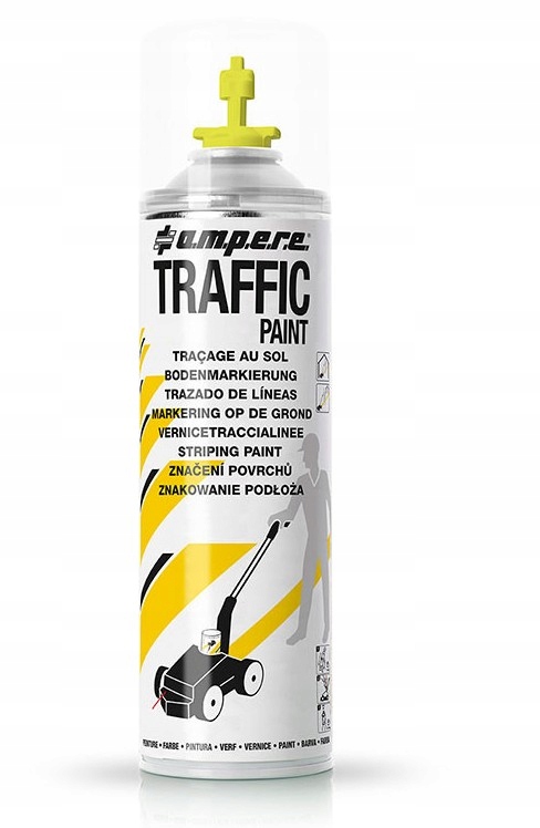 Аерозольна фарба для розмітки ліній і піктограм на зовнішніх і внутрішніх поверхнях. Фарби AMPERE TRAFFIC стійкі до стирання, з високим вмістом пігменту, підходять для місць з інтенсивним рухом людей.